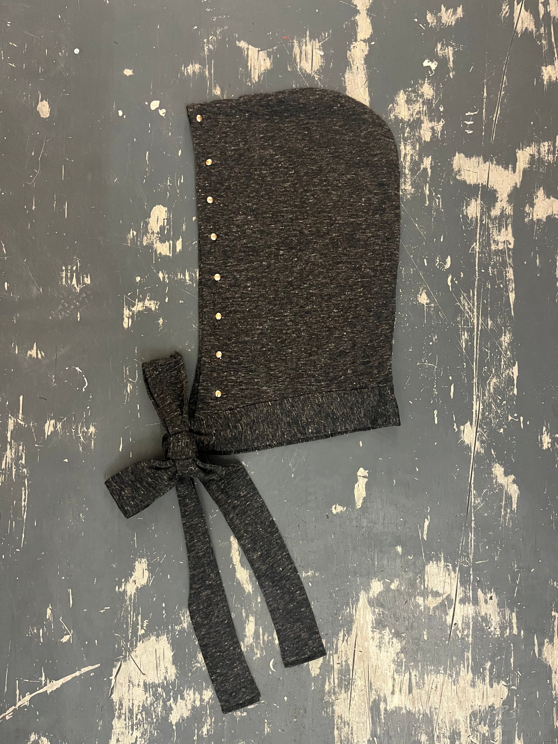 Handmade by me in my studio in East London using dead stock jersey fabric, featuring a silver studded edge. Guaranteed to keep your ears cosy in the cold weather!